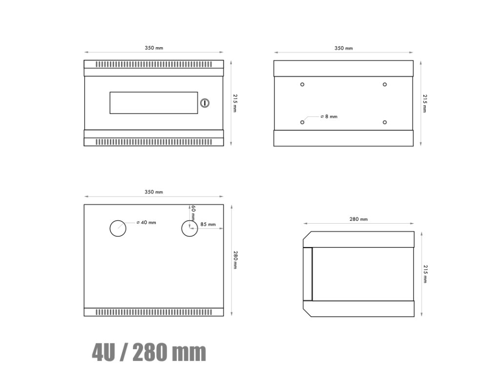 - 10" nástěnné provedení pro instalaci 10"komponent datové sítě- svařovaný skelet rozvaděče o síle 1,5 mm /ocelový plech/