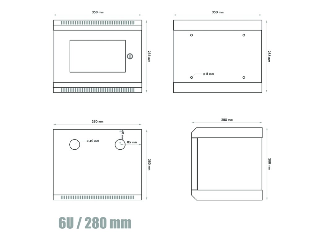 10" rack jednodílný 6U/280 DATACOM šedý Skl.dv.