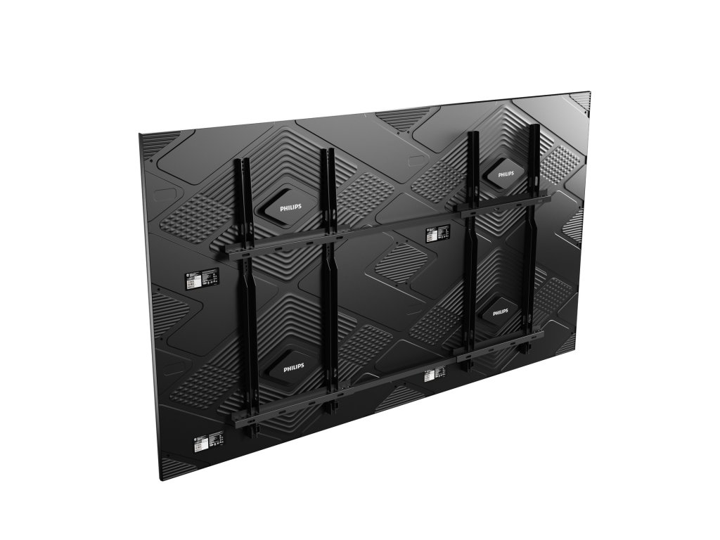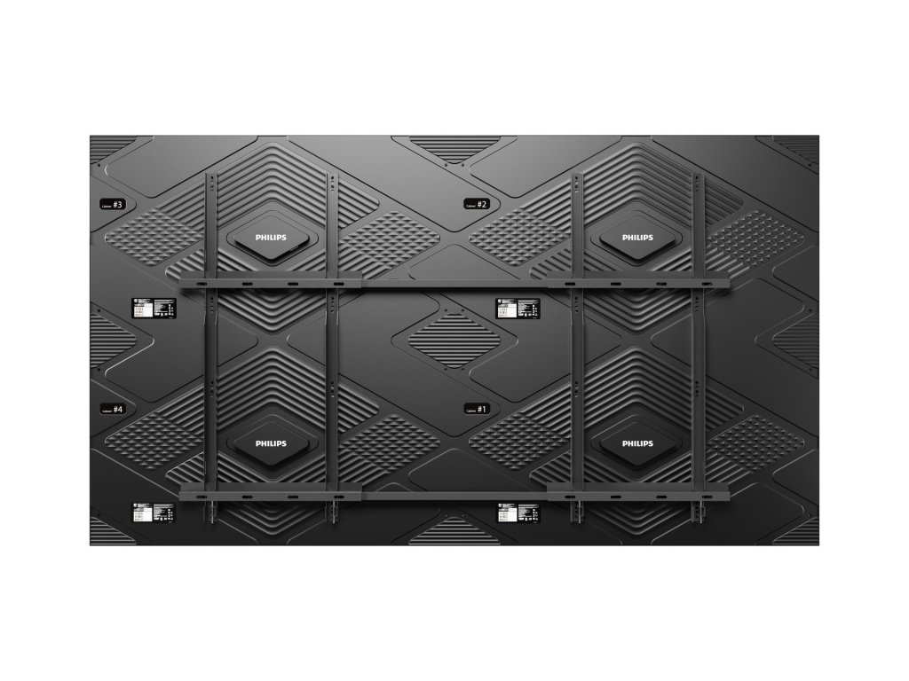Philips Unite LED 7000 Series easy mount display - 110" videowall replacement – install under 1 hourBezproblémové propojení čtyř 55" LED panelů pro vytvoření náhrady za 2×2 FHD LCD videostěnu, bez nutnosti konfigurace. Dodáváno v jednom balení s nástěnným držákem splňujícím normu ADA, kompatibilní i s běžnými VESA úchyty. Instalace zabere méně než hodinu.