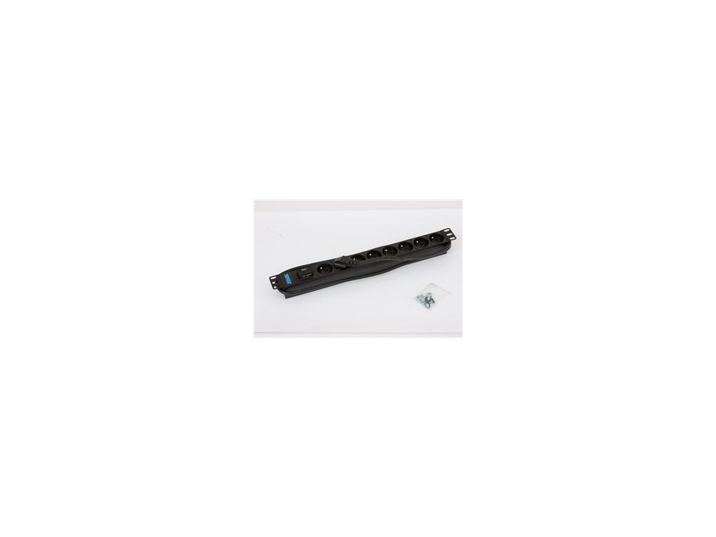 19" rozvodný panel 1U, 8x zásuvka podle ČSN, max 16A, kabel 3x1,5mm, 2m + zástrčka univerzál CZ-DE max. 16A,