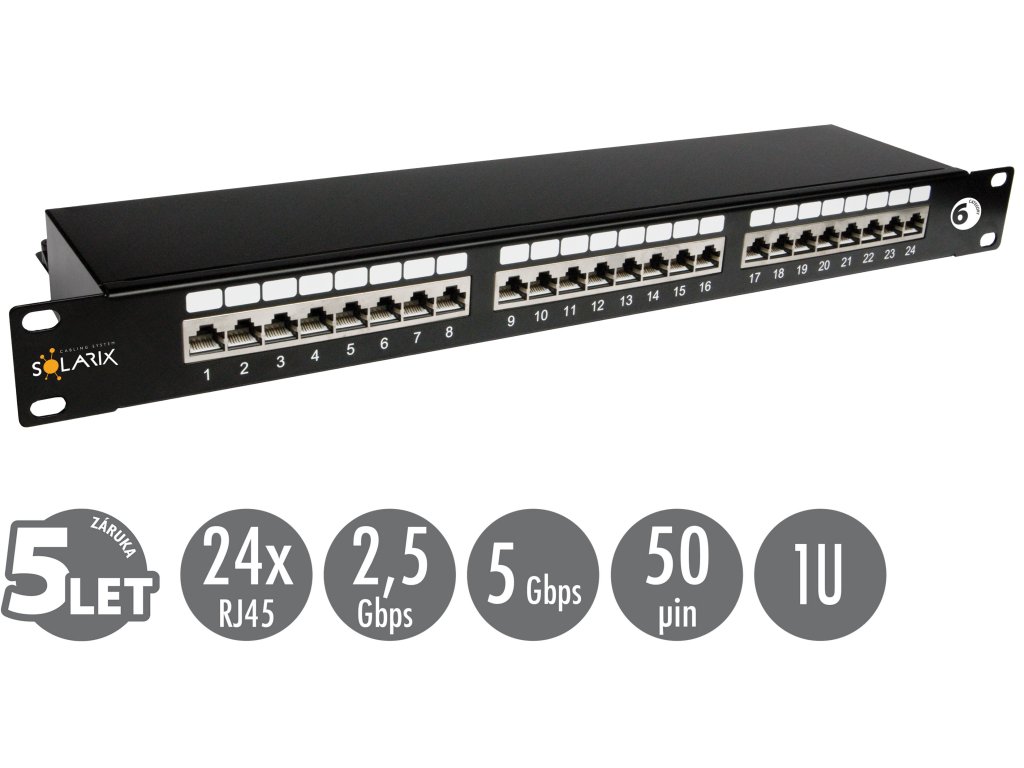 19" patch panel Solarix 24 x RJ45 CAT6 STP černý 1U SX24-6-STP-BK
