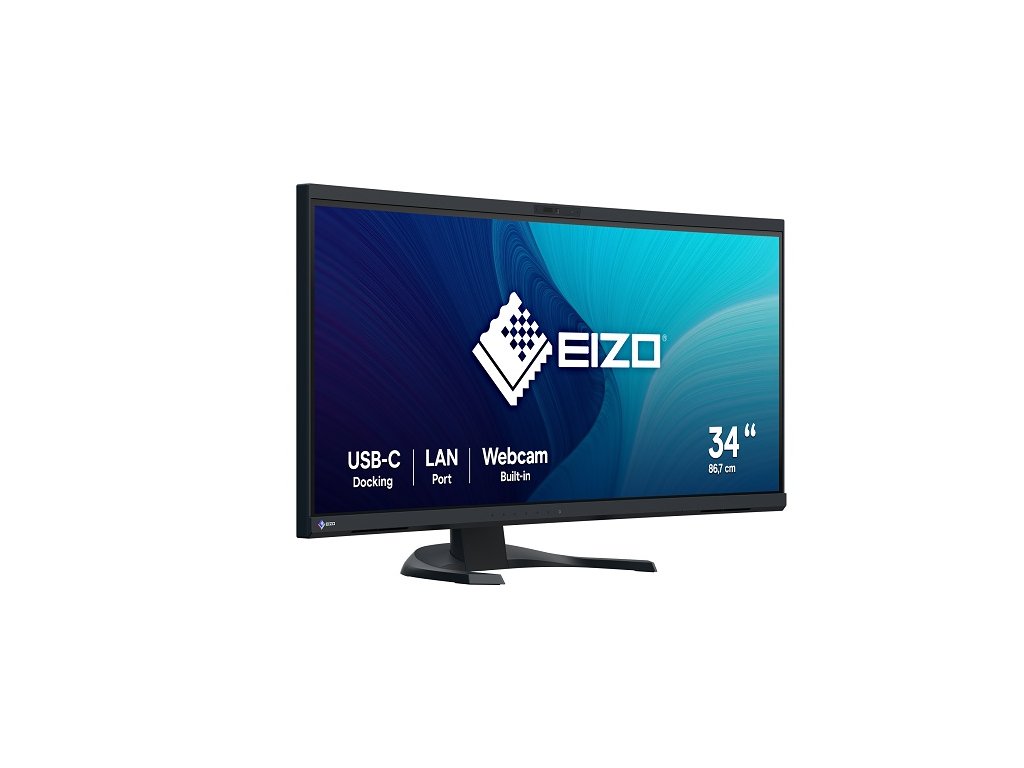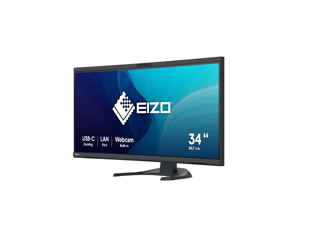 EIZO EV3450XC FlexScanZakřivený monitor s webovou kamerou s rozlišením 5 Mpx, mikrofonem s potlačením šumu a dokovací stanicí USB-C s 94wattovým nabíjením Power Delivery.