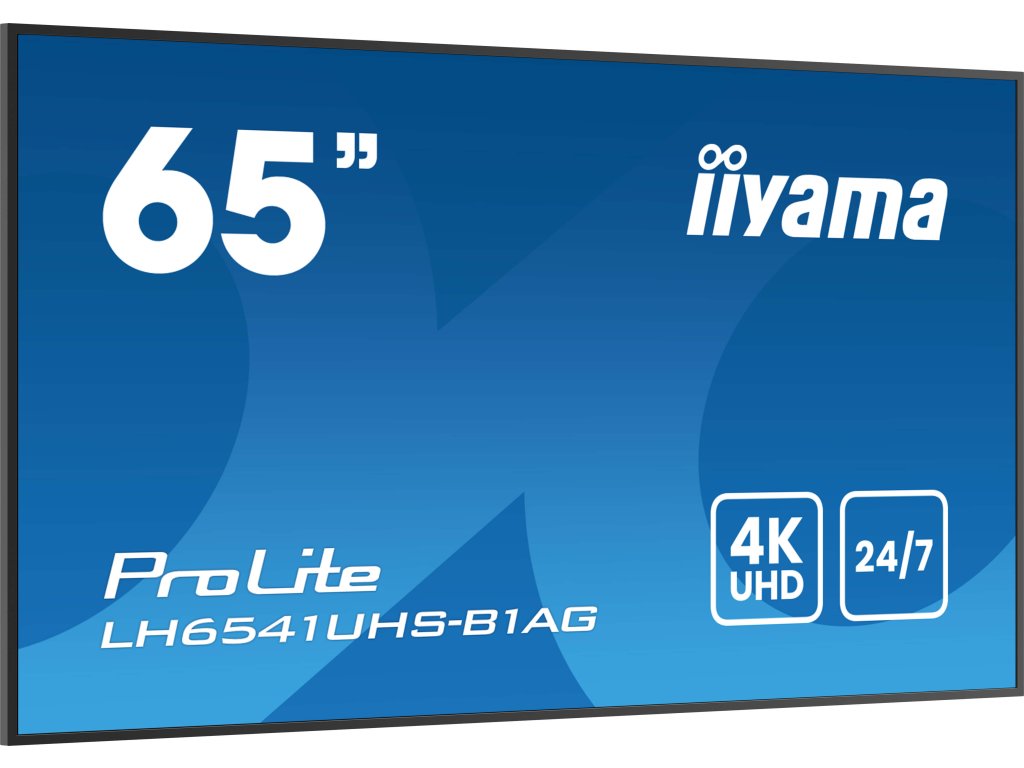 65“ profesionální displej Digital Signage s rozlišením 4K UHD a dobou provozu 24/7Model iiyama LH6541UHS-B1AG, zasazený do tenkého rámečku, je profesionální digitální displej, který nabízí nepřetržitý provoz v orientaci na výšku i na šířku.