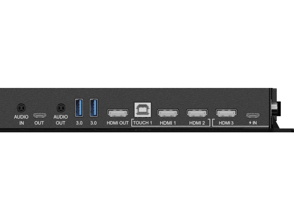 *Digitální vstupní porty: HDMI x4 (2.0, max. 3840x2160 @60Hz, YUV420/ YUV444/ RGB444), DisplayPort x1 (2.1, max. 3840x2160 @30Hz), USB-C x2 (3.2 (Gen 1,5Gbit), 3840x2160 @60Hz (RGB444), DP 1.2 Alt mód, Dotyk, 1x přední: 100W PD, 1x zadní: 15W PD)