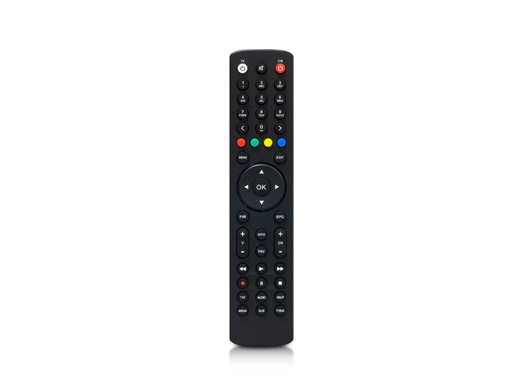 S týmto ovládaním môžete okrem prijímača zapnúť aj televízor a ovládať hlasitosť na Vašej TV. Intuitívne rozmiestnenie tlačidiel v ergonomickom slim dizajne a s matnou povrchovou úpravou pre elimináciu odtlačkov prstov. Segmentačné rozdelenie tlačidlových skupín. Farebné tlačidlá sú umiestnené v blízkosti tlačidla OK a smerových tlačidiel. Optimálnejšie rozdelenie tlačidiel pre orientáciu po hmate.