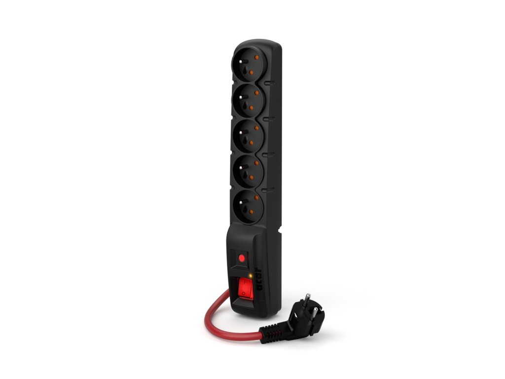 Acar F5 3m kabel, 5 zásuvek, přepěťová ochrana, max.proud 16A, černý