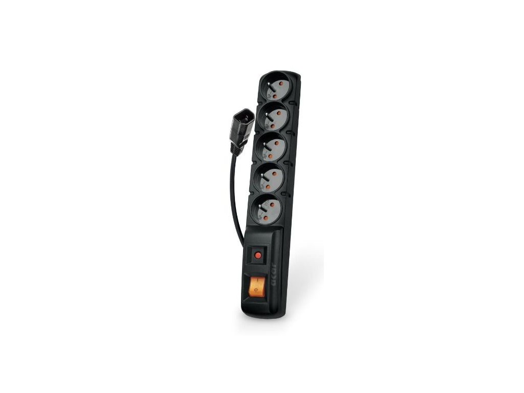 Acar F5 IEC 1.5m kabel, 5 zásuvek, přepěťová ochrana, C14 do UPS, černý