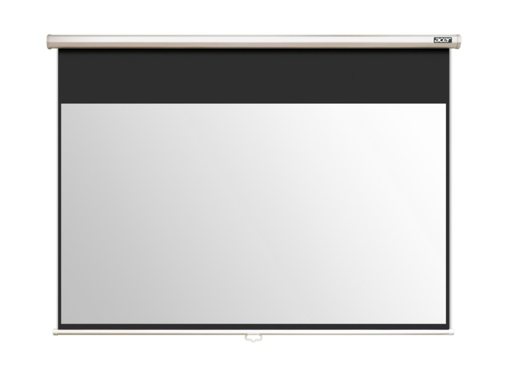 Projekční plátno Acer umožňující montáž na zeď nebo strop.Ovládání: manuální