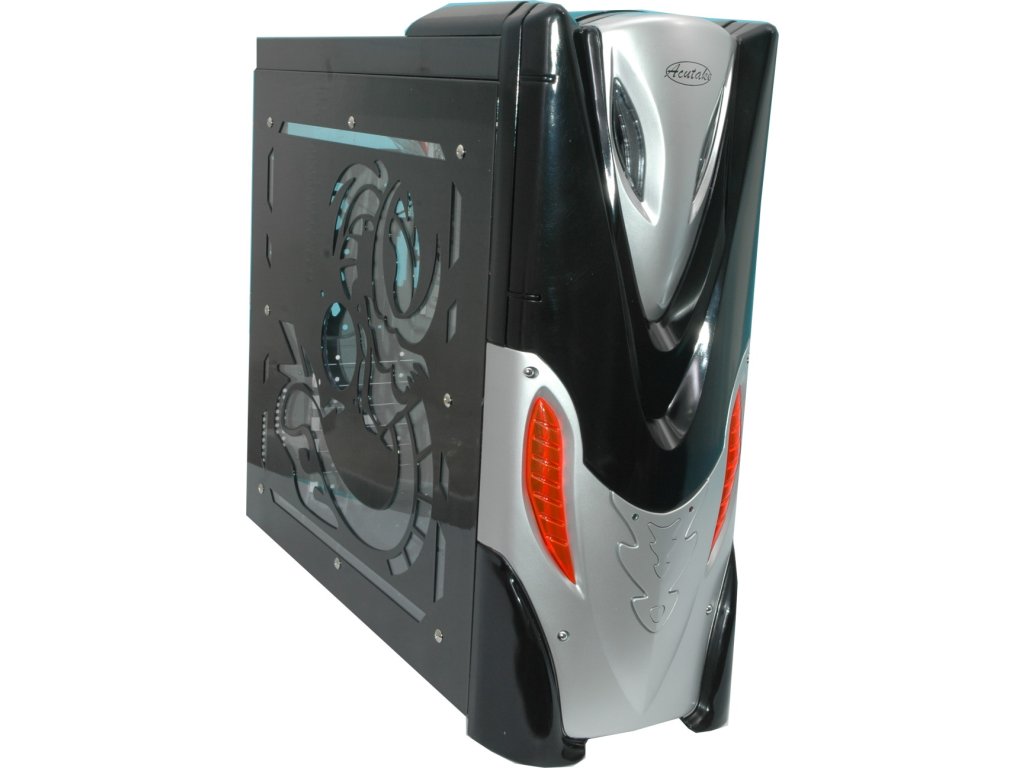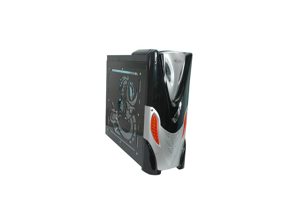 Kvalitní počítačová skříň s velmi zajímavým herním designem zaujmeK dispozici máte čtyři 5,25 pozice, dvě 3,5 pozice a dalších šest uzavřených 3,5 pozice. Bočnice je prosklená a opatřená kovovým velmi zajímavavě frézovaným krytem. Skříň se bude vyjímat na stole každého hráče.