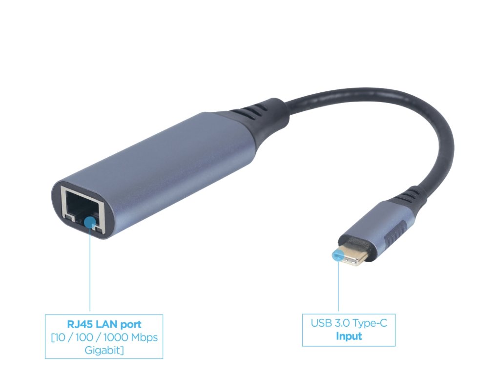 Adaptér Gembird USB-C to LAN Gbe RJ-45