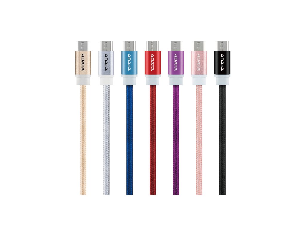 Klasický kabel s micro USB konektorem na jedné straně a velkým USB konektorem na druhé straně se liší zářivými barvami, hliníkovým krytem konektoru a kabelem potaženým tkaninou, která chrání kabel proti ohnutí a zamotání.Vlastnosti: