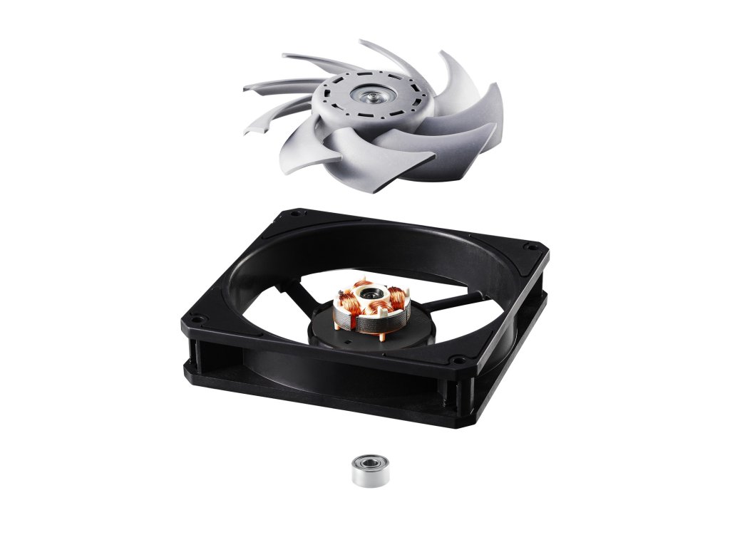 Vrtule ventilátoru důmyslně tvarována tak, aby snižovala rušivé frekvence hluku ventilátoru na jemnější „tón vibrací“, který lépe vyhovuje lidskému sluchu. Navíc se 4 protivibračními gumovými podložkami vytváří ventilátor XPG VENTO PRO 120 PWM pouhých 28dB(A) i při maximálních otáčkách 2 150 ot./min. (100% pracovní cyklus).