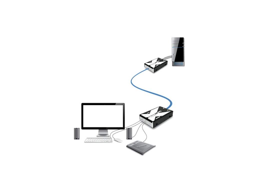 *přenáší signály 1x (2x) DVI-D/HDMI, klávesnice (USB), myš (USB), periférie (USB 2.0 low/full speed), audio analogové/HDMI