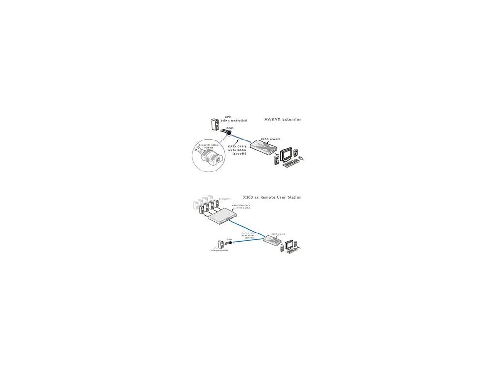 CATx extendery AdderLink X200 umožňují pracovat z počítačem nebo KVM přepínačem na vzdálenost až 100 metrů po běžném UTP kabelu. Extender přenáší klávesnici, monitor a myš. Můžete tak přemístit počítač do technologické místnosti nebo spravovat vzdáleně servery z pohodlí kanceláře. Vysílač v podobě malého kabelového adaptéru je napájen přímo z PC.Parametry