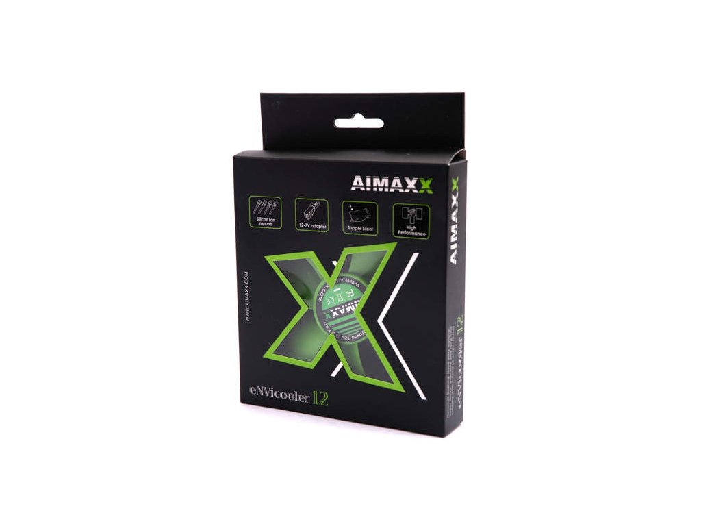 Spolehlivost, tichost a atraktivní svěží design – to jsou ventilátory AIMAXX. Všechny AIMAXX ventilátory jsou vybaveny unikátním Nanomaxx ložiskem. Toto AIMAXXem patentované ložisko je vyrobeno ze super tenkého ale extra trvanlivého materiálu a zaručuje vysokou životnost a velmi nízkou hlučnost, dosaženou malým třením. Celá série je balena v poutavém zeleno-černém balení s oknem pro snadnější prezentaci zákazníkům.Technická specifikace:
