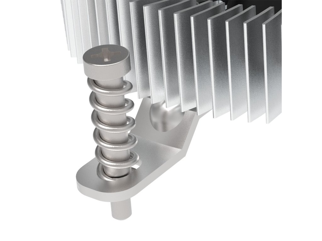 Mimořádně bezpečný hliníkový chladič Intel LGA1700 Thin Mini-ITX s velmi nízkým profilemUltra nízkoprofilový 21,8mm chladič s vestavěným ventilátorem poskytuje kompaktní řešení chlazení s nízkou hlučností pro procesory Intel LGA1700 s TDP až 35 W v tenkých skříních mini-ITX a SFF.