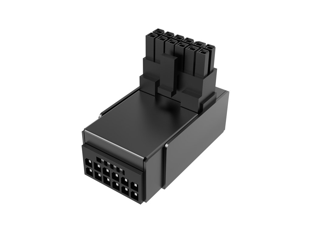 Inovativní konektor 12V-2X6, který umožňuje snadno vylepšit estetický vzhled a správu kabelů pomocí adaptéru 12+4-pin s 90stupňovým připojením.