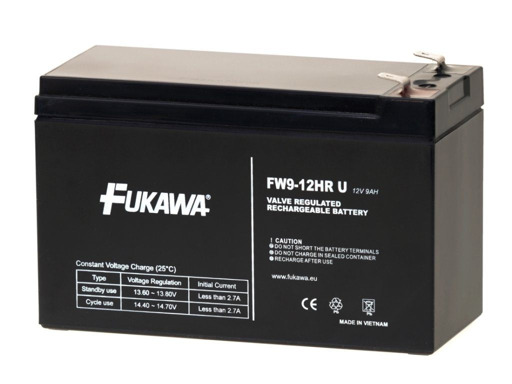FUKAWA FW 9-12 HRU je hermeticky uzavřený, záložní, bezúdržbový olověný akumulátor určený pro záložní zdroje UPS a jiné elektronické systémy. Baterie FUKAWA mají vysokou kvalitou zpracování, jsou velmi spolehlivé a jsou tak nejlepší variantu v poměru cena/výkon. Díky jejich unikátní konstrukci je lze provozovat v libovolné poloze a nevyžadují žádnou údržbu.Technické parametry: