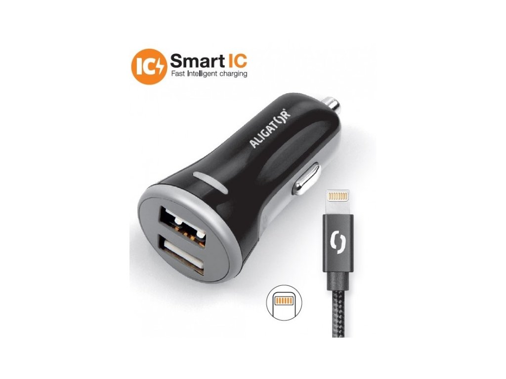 ALIGATOR 3.4A, 2xUSB, smart IC, černá, USB kabel pro iPhone/iPad