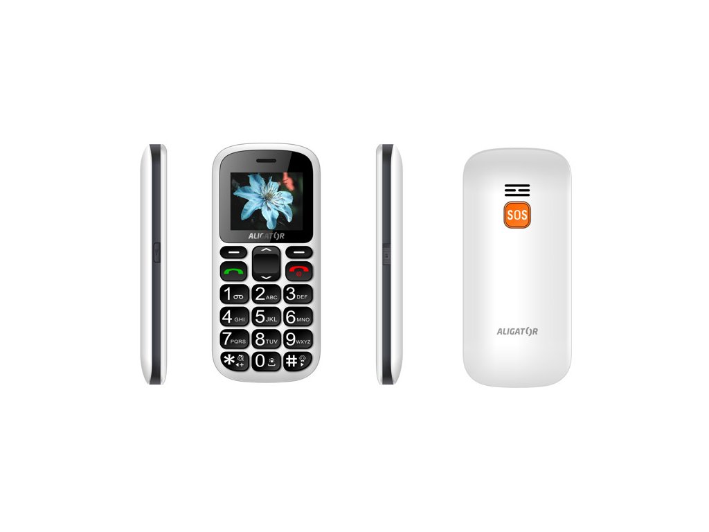 Klasický telefon pro seniory s SOS tlačítkem, možností obrázkového tel. seznamu a funkcí určení polohy SOS locator,s podporou dvou SIM karet. Ve dvou barvách, černo-šedá a bílo šedá . Stojánek je součástí balení.