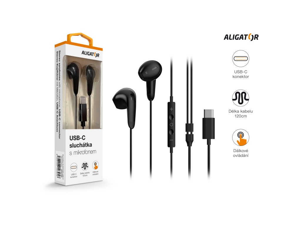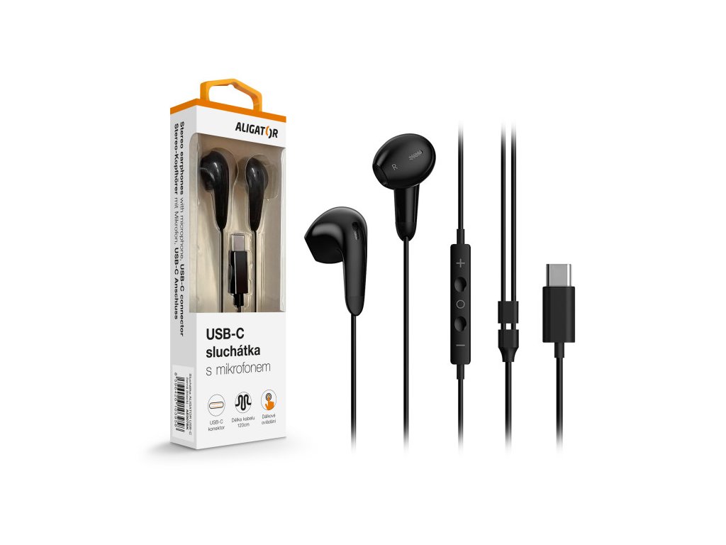 Sluchátka ALIGATOR AE007 Cool Music, USB-C, černá