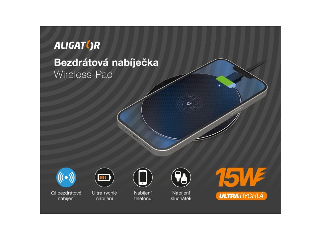 ALIGATOR bezdrátová nabíječka Aligator Pad 15W černá
