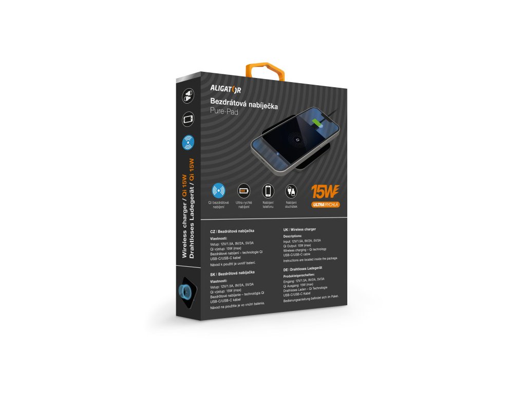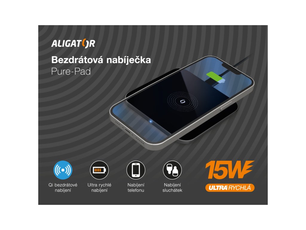 Technologie Qi používá k přenosu elektrické energie elektromagnetické pole s adaptivním řízením výkonu. Díky tomu je možné bezpečně a snadno nabíjet telefon nebo sluchátka. Aligator Pure-Pad umožňuje bezdrátově nabíjet moderní telefony výkonem až 15W, což je 6x více než u základní USB nabíječky!