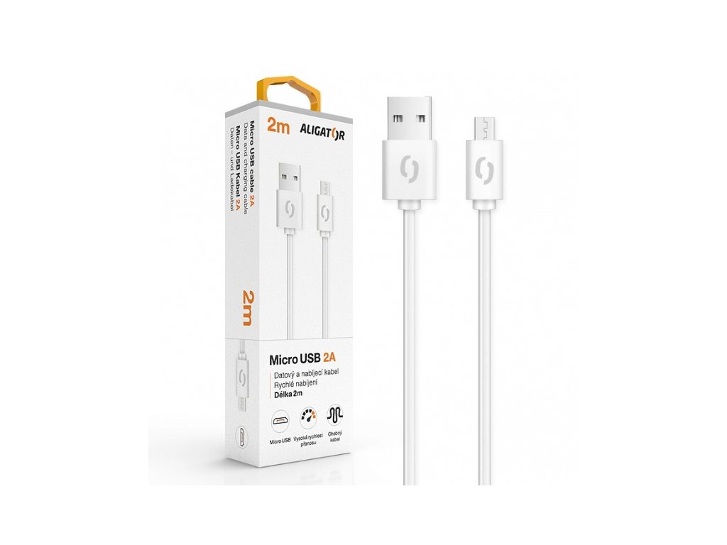 ALIGATOR Datový kabel 2A micro USB 2m, bílý