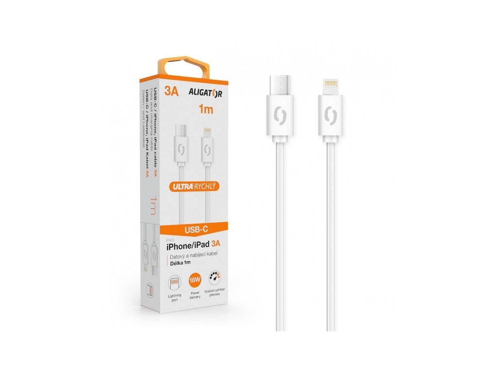 ALIGATOR Datový kabel POWER 3A, USB-C/lightning bílý