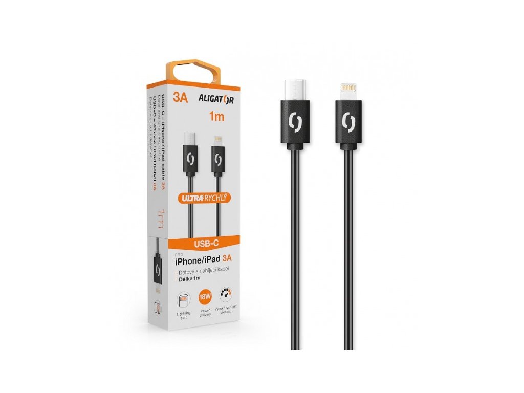 ALIGATOR Datový kabel POWER 3A, USB-C/lightning černý