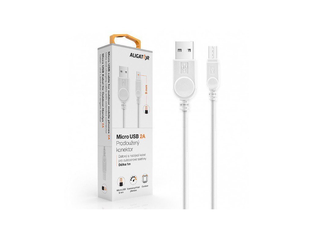 Aligator kabel microUSB prodloužený kon. 9mm Bílý