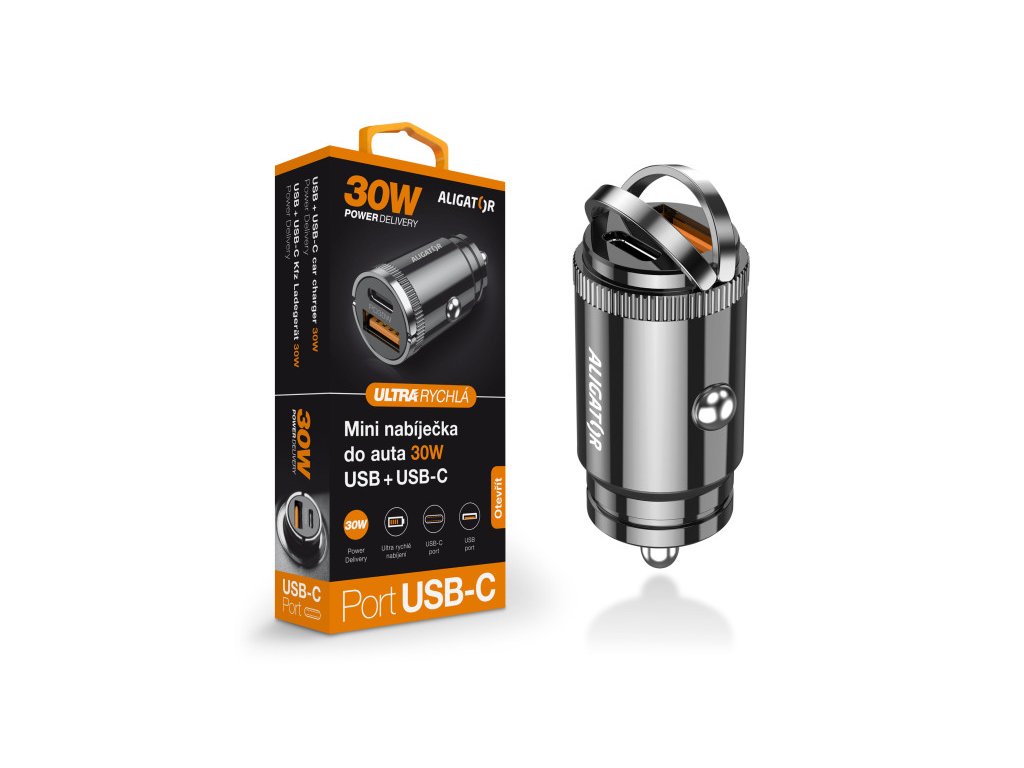 Aligator mini nabíječka do auta Power Delivery 30W, USB-C + USB-A
