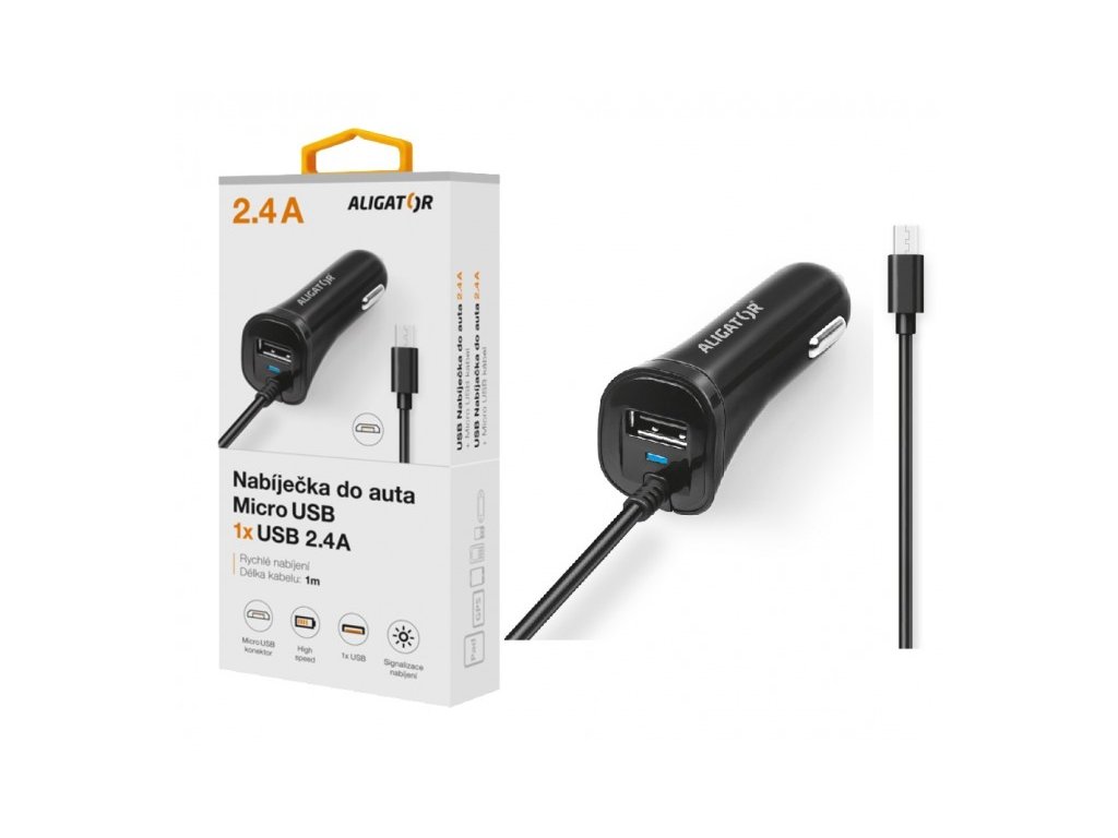 Aligator nab. do auta 2xUSB výstupem 2,4A, černá