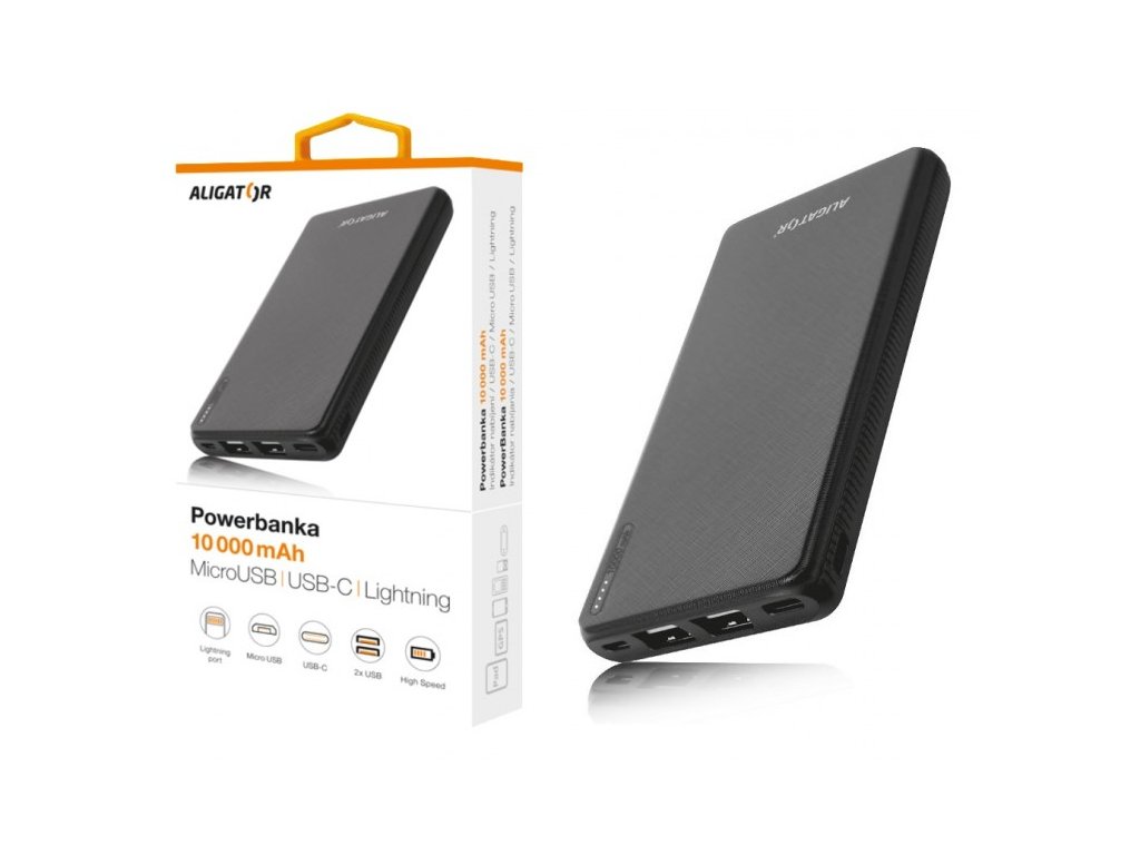 ALIGATOR PB1000, 10000mAh 3v1, micro/iPh/USB-C, černá
