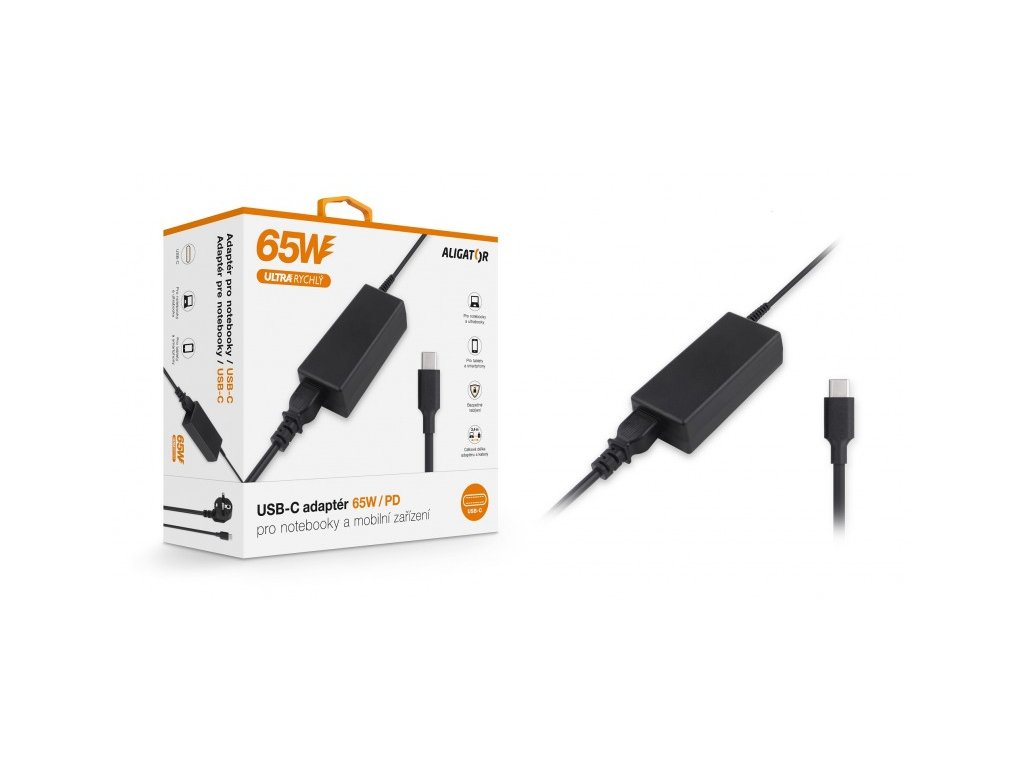 Chytrý USB-C adaptér ALIGATOR Power Delivery 65WVýkonný síťový adaptér řady „POWER DELIVERY“ s ultra rychlým USB-C konektorem o výkonu 65W.