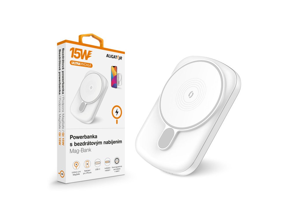 ALIGATOR Powerbanka s bezdrátovým nabíjením ALIGATOR Mag-Bank, určeno pro Magsafe, 5000mAh, bílá