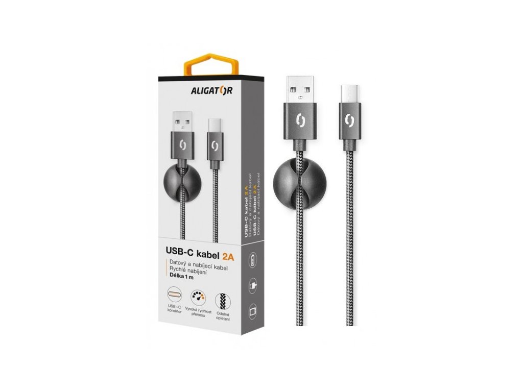 ALIGATOR PREMIUM Datový kabel 2A, USB-C černý