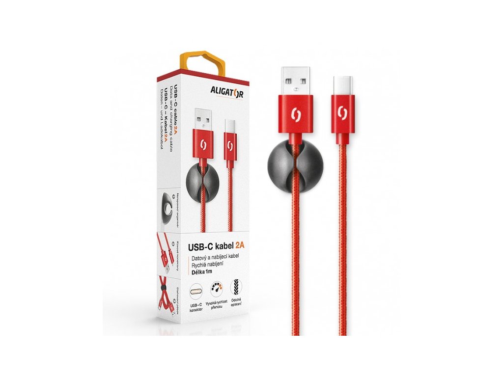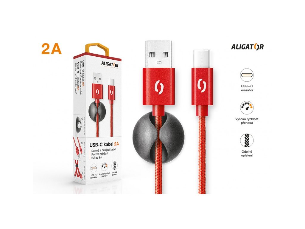 ALIGATOR PREMIUM Datový kabel 2A, USB-C červená