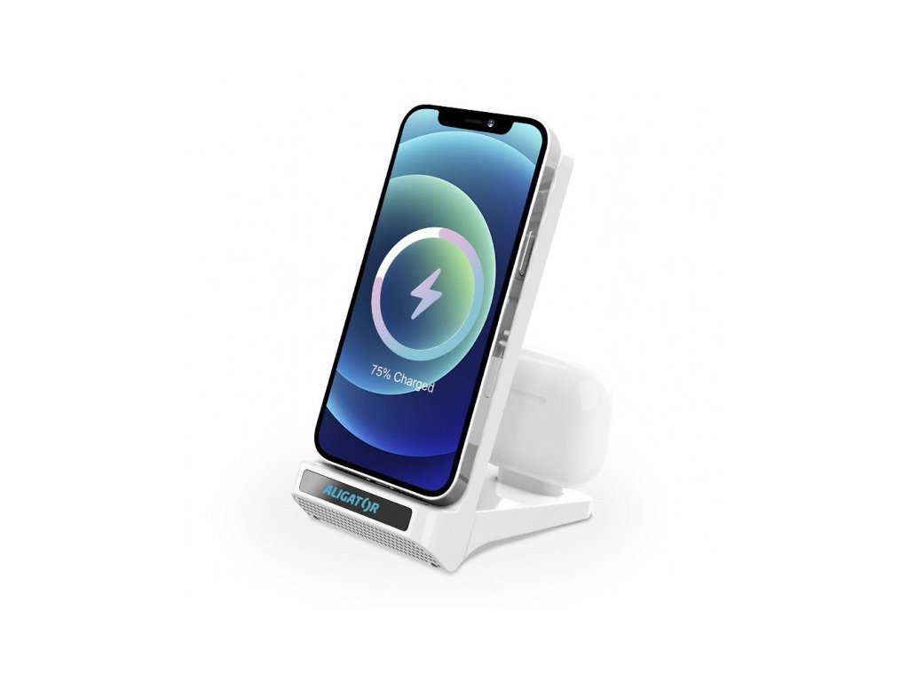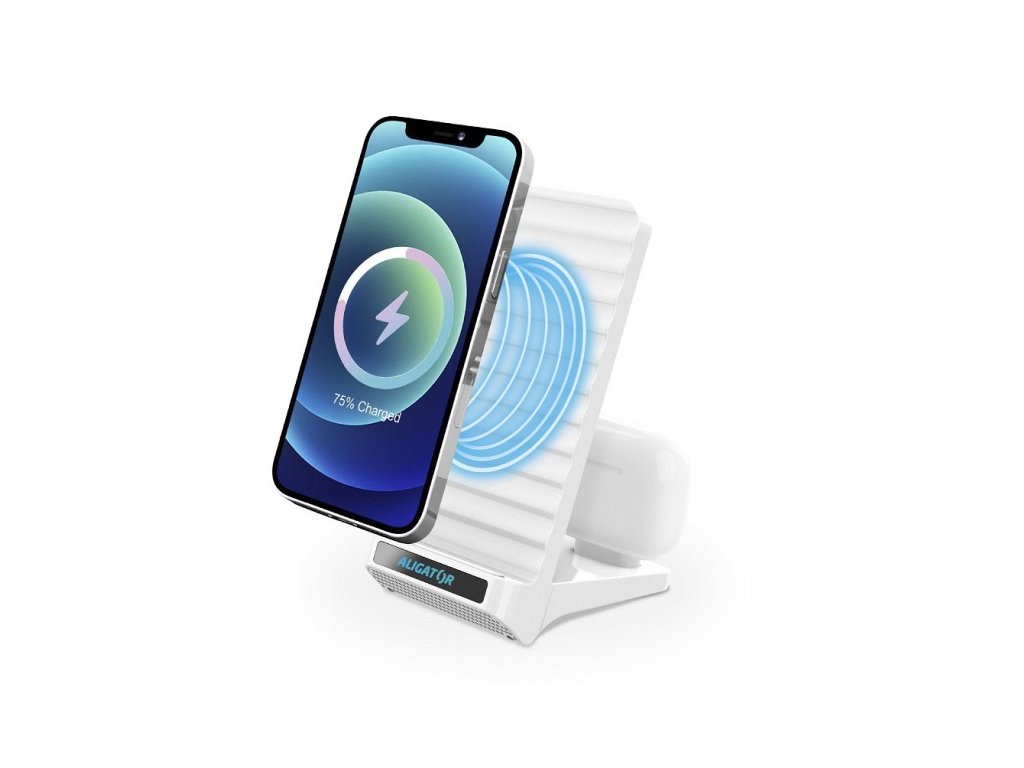 ALIGATOR Stojánek s bezdrátovým nabíjením 15W a USB-C konektorem, 2v1, bílý
