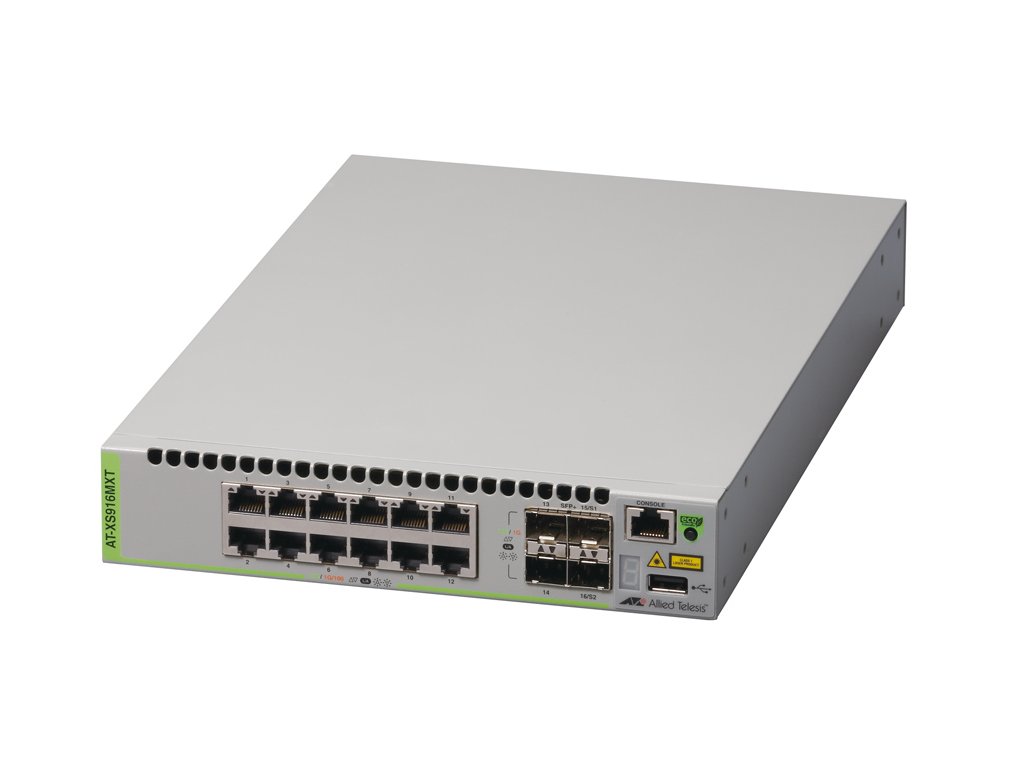 OVERVIEWThe Allied Telesis XS916MXT features 12 x 100/1000/10GBASE-T, and 4 x SFP+ ports, in a cost-effective compact package.