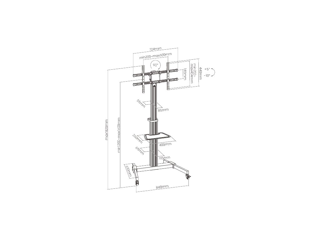 ALU pojízdný stojan Brateck FS44-46TW pro TV 37"-86" 50kg police