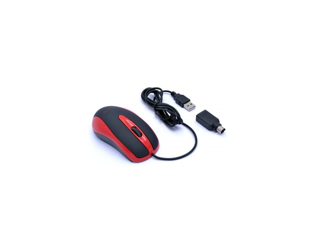 Luxusní červeno-černá 3-tlačíková myš s velmi přesným rozlišením 800dpi a s rolovacím tlačítkem. Rozhraní USB 1.1 (kompatibilní s USB 2.0) a redukce z USB na PS/2 konektor. Universální pro praváky i leváky. Velmi příjemná struktura na dotyk. Pěkné retailové blisterové balení.Dodatočné parametre
