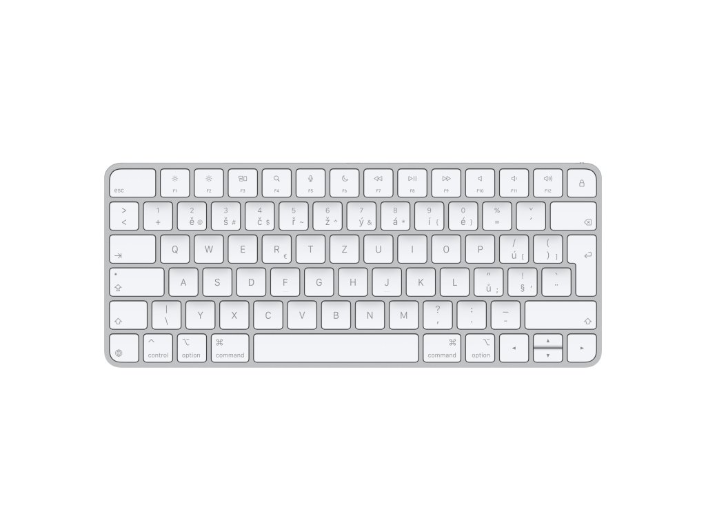 Magic Keyboard – českýNa Magic Keyboardu se píše mimořádně pohodlně a přesně. Klávesnice je bezdrátová a dobíjecí. Její zabudovaná baterie má ohromnou výdrž – na jedno nabití udrží klávesnici v chodu déle než měsíc. S Macem se spáruje automaticky, takže se můžeš rovnou dát do práce.