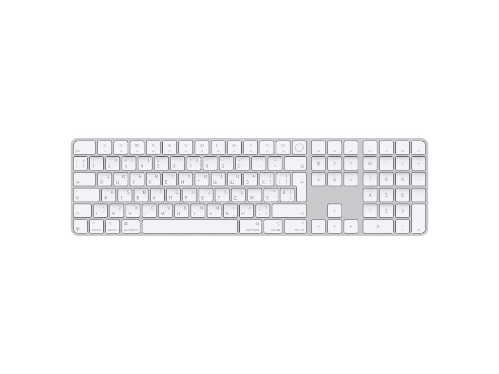 Magic Keyboard s Touch ID a číselnou klávesnicí pro Macy s čipem Apple – ukrajinský – bílé klávesyMagic Keyboard je k dispozici i s Touch ID na rychlé, snadné a bezpečné ověřování uživatele při přihlašování a nakupování.