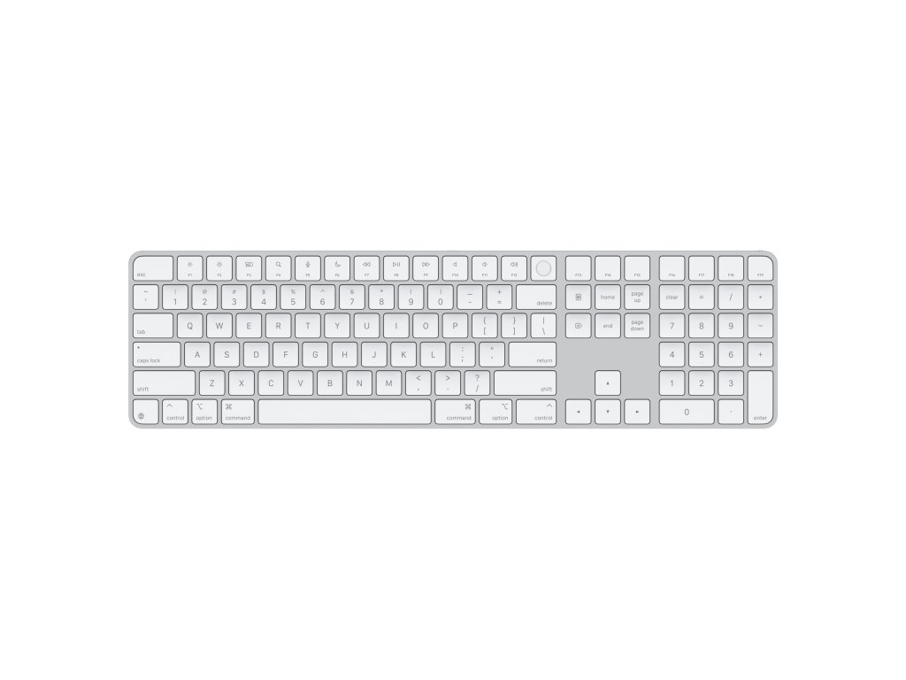 Magic Keyboard s Touch ID a číselnou klávesnicí pro Macy s čipem Apple – anglický (USA) – bílé klávesyMagic Keyboard je k dispozici i s Touch ID na rychlé, snadné a bezpečné ověřování uživatele při přihlašování a nakupování.