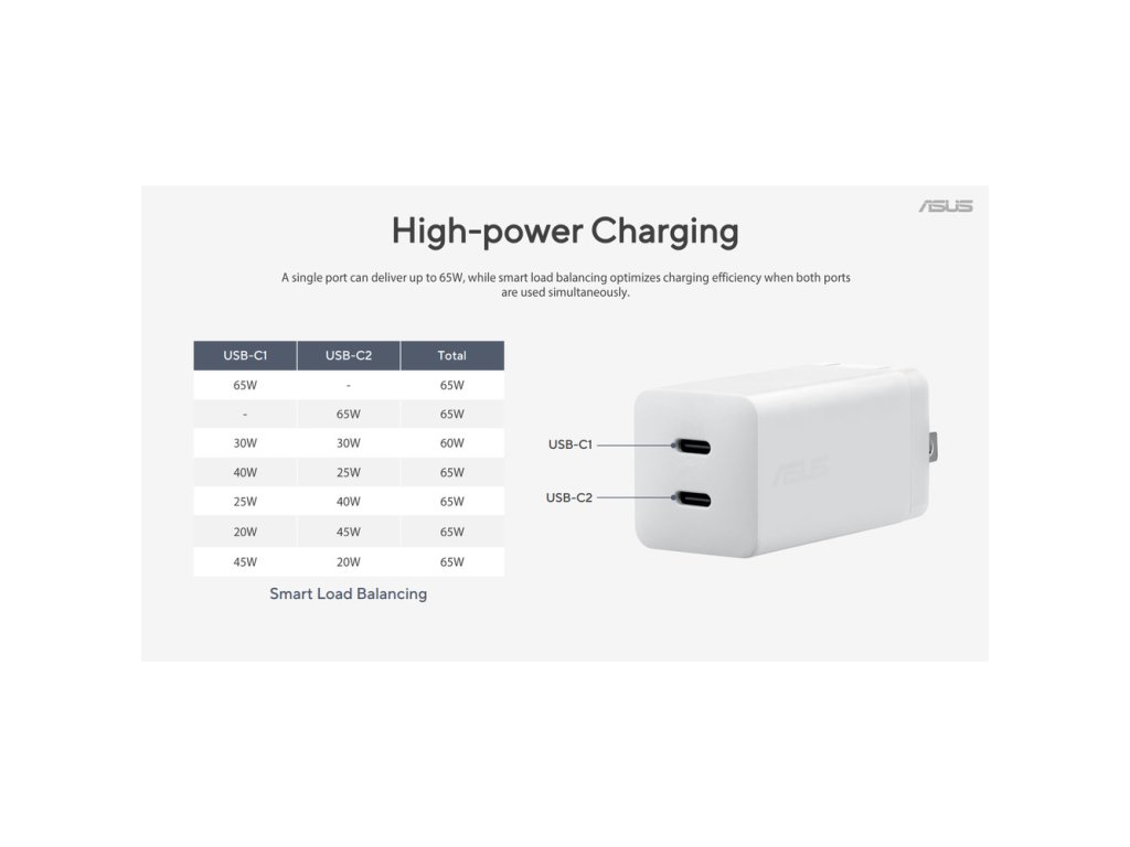 ASUS 65W USB-C GaN Charger*Kapesní nabíječka o hmotnosti pouhých 120 gramů a rozměrech 32 x 64,1 x 30 mm