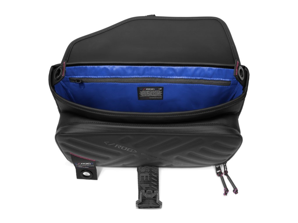 Promyšlené vnitřní uspořádání usnadňuje organizaci a rychlý přístup k vybavení. Elegantní černý design se hodí ke každému outfitu, zatímco vlastní ROG monogramy a značení na vnějším materiálu zajišťují, že herní DNA značky je vždy viditelná.