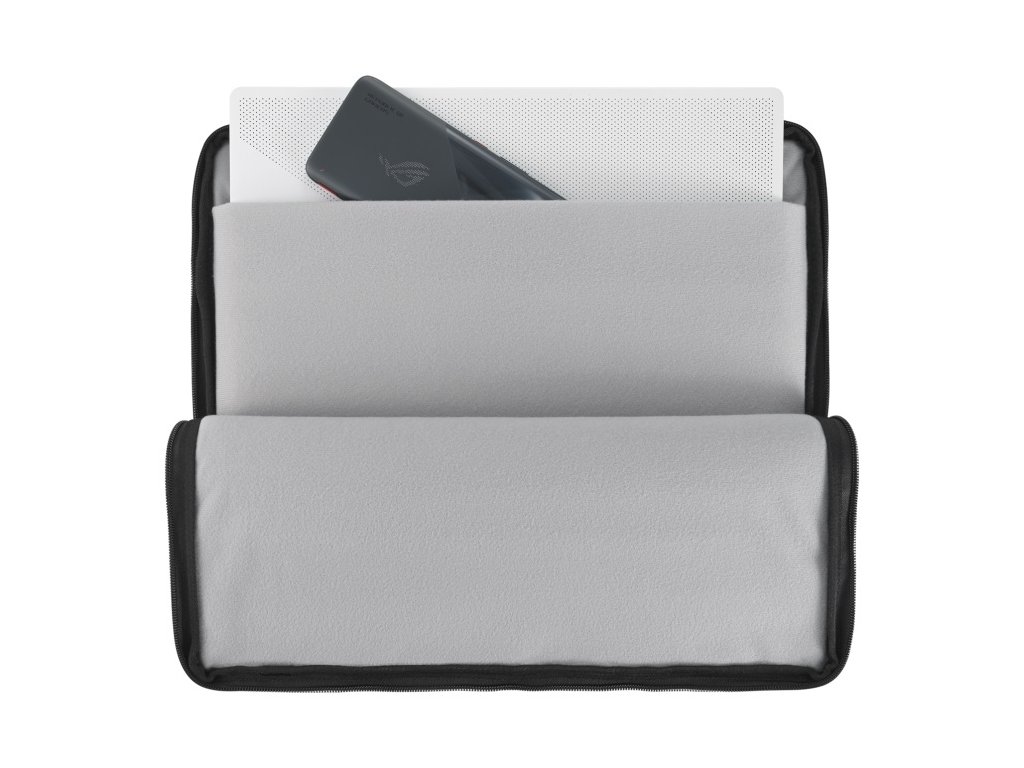 Špičkový hardware si zaslouží kvalitní ochranu. Pouzdro ROG Ranger Carry Sleeve 16 je navrženo pro každodenní používání a je opatřeno více vrstvami z polyesteru 600D a polyuretanu, které chrání před běžnými oděrkami a nárazy. Navíc odpuzuje vodu, takže vaše cennosti budou v bezpečí před nepřízní počasí. Uvnitř je pouzdro Ranger Carry Sleeve vystláno 8mm EPE pěnou a opatřeno sametem, který chrání notebook a další zařízení před poškrábáním.
