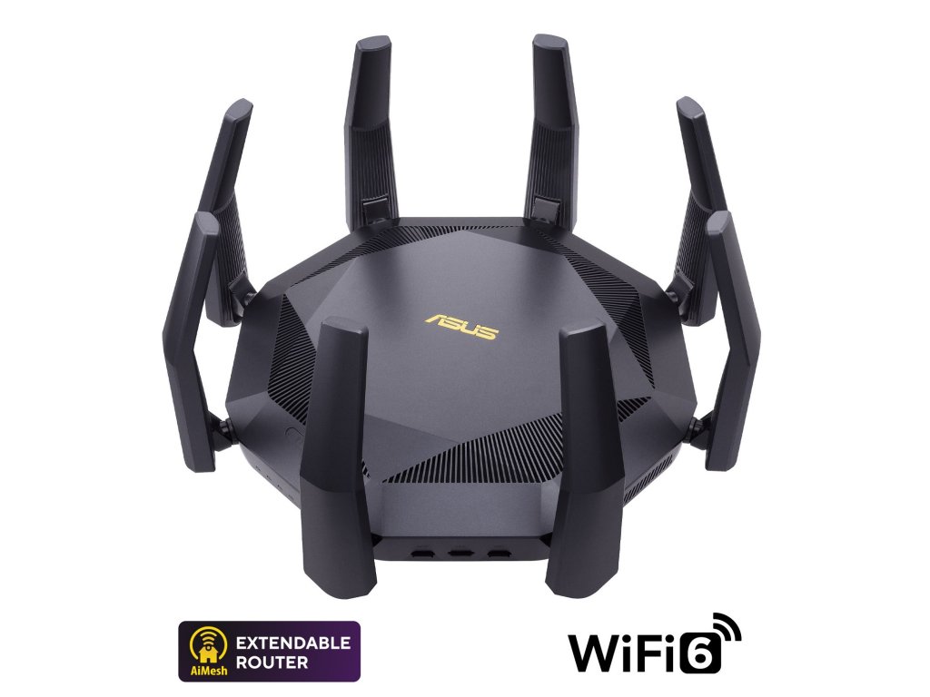 Asus RT-AX89X dvoupásmový směrovač AX6000 Dual Band WiFi 6 (802.11ax) podporující technologii MU-MIMO a OFDMA, se síťovým zabezpečením AiProtection Pro poháněným technologií Trend Micro a Adaptive QoS.Nová éra domácí WiFi. Rostoucí počet připojených osobních a IoT zařízení vedl k celkovému zvýšení hustoty sítě, což posouvá hranice současného standardu WiFi. Nejnovější standard 802.11ax poskytuje technologie budoucnosti, vyšší účinnost sítě, vyšší rychlosti WiFi, větší pokrytí a delší životnost baterie připojených zařízení, což uživatelům poskytuje výrazně lepší zážitek ze sítě.
