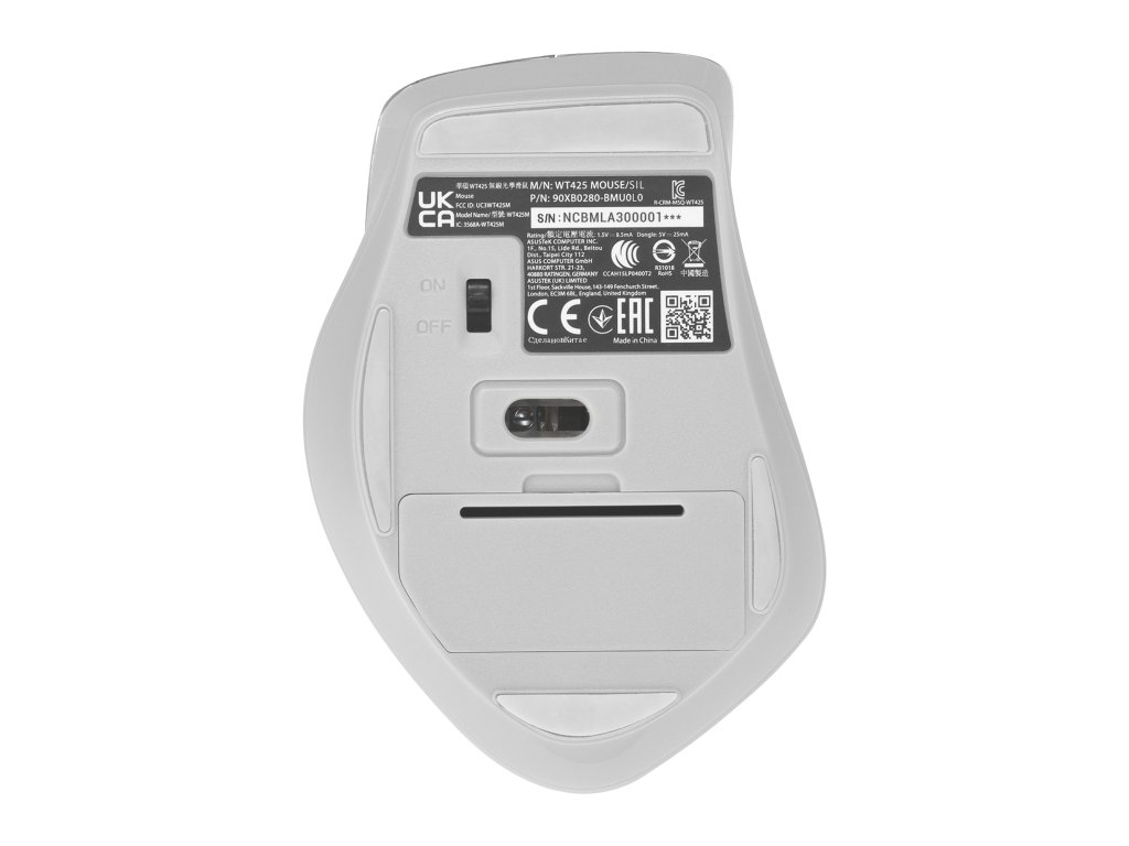 ASUS WT425/Ergonomická/Optická/Pro praváky/1 600 DPI/Bezdrátové USB/Stříbrná